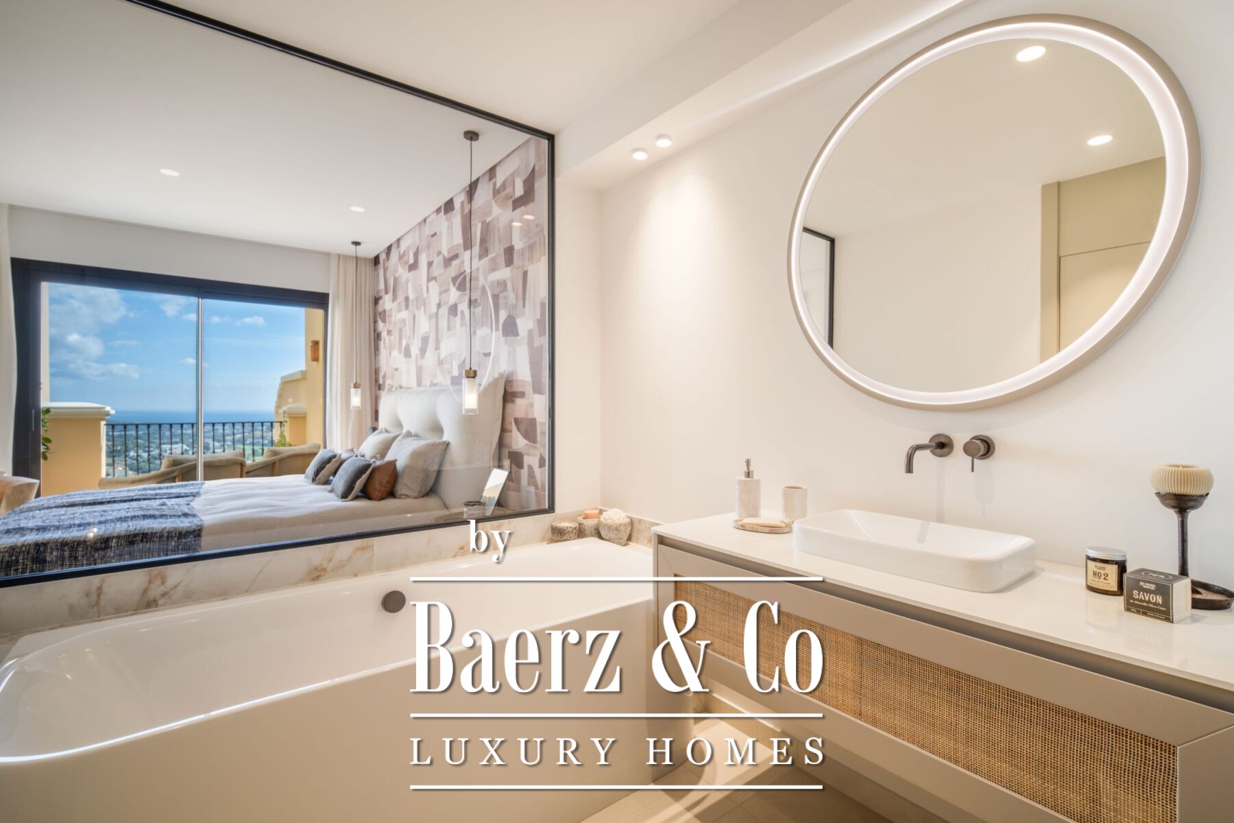 这套位于马贝拉La Quinta的顶层公寓以开阔视野俯瞰海洋、群山以及翠绿的高尔夫球场,为景观增添尊贵气息。全季露台邀您全年舒居,日出时的宁静与傍晚柔和的光线在此交汇,非常适合私密用餐或静谧休憩。
