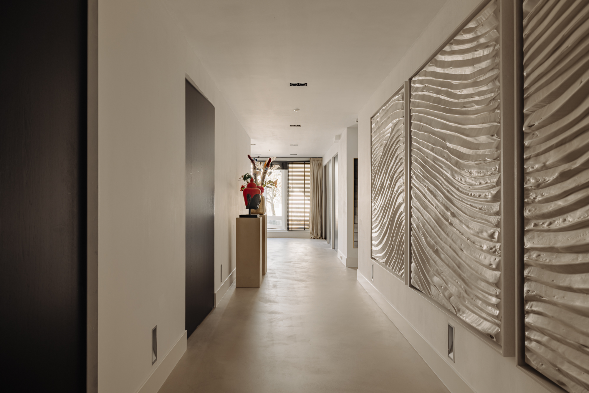 别墅与景观花园均由Marcel Wolterink精心构思,展现出奢华与自然环境之间的低调和谐。主楼建筑面积为590平方米,另有139平方米的独立宾客楼,二者相互关联又各具私密性。别墅共设八间卧室与七间卫浴,分布于三层通透的空间之中。主楼宽敞的起居区域与采用高级材质打造的厨房相连,配备Boretti pitt cooking与Gaggenau电器。玻璃中庭连通健身房与独立工作室公寓,地下室通向私密露台与加热泳池,室内外无缝连接。